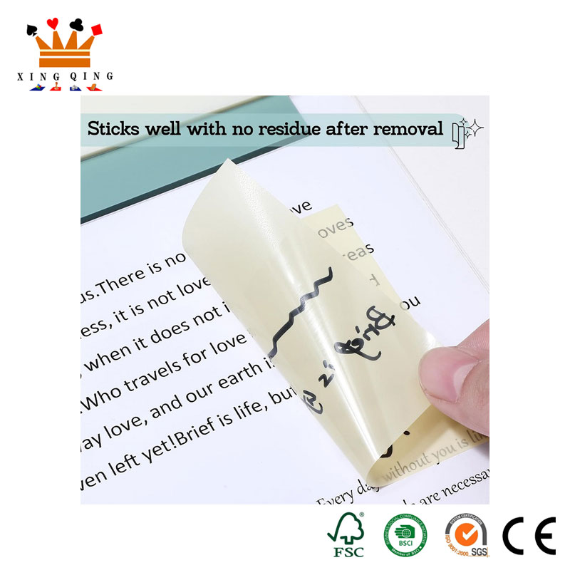 Syarikat Xingqing ialah pengilang profesional dan pembekal Nota Lekat Telus di China, kualiti tinggi adalah budaya kami. Kilang kami diperakui oleh BSCI dan FSC, dan bahannya boleh dikitar semula dan mesra alam. Selamat datang ke kilang kami untuk menyesuaikan Nota Lekat Telus berkualiti tinggi.
